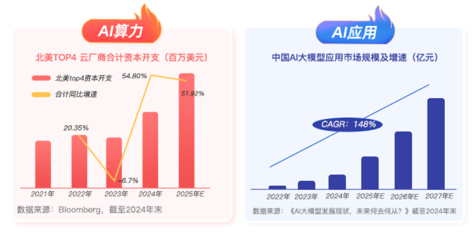 全球AI市场浪潮持续升温,全球AI军备竞赛进入快车道,国内外云厂商算力支出持续加码,AI赛道或仍然处于行业发展中前期,后续仍有较大空间。