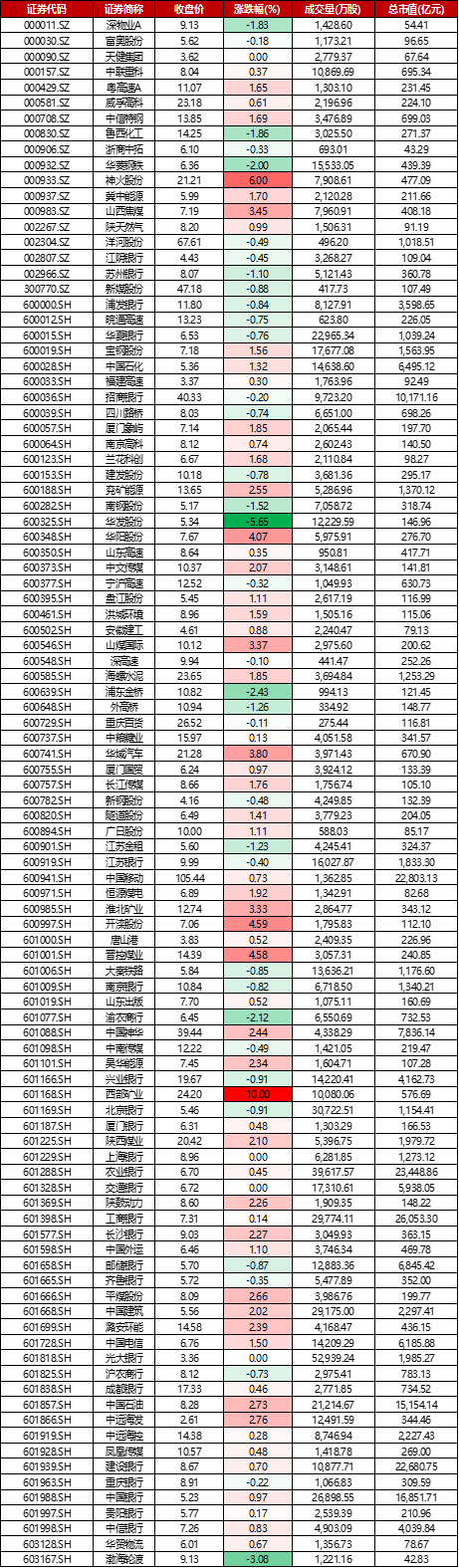 今日成分股西部矿业,神火股份涨幅居前。