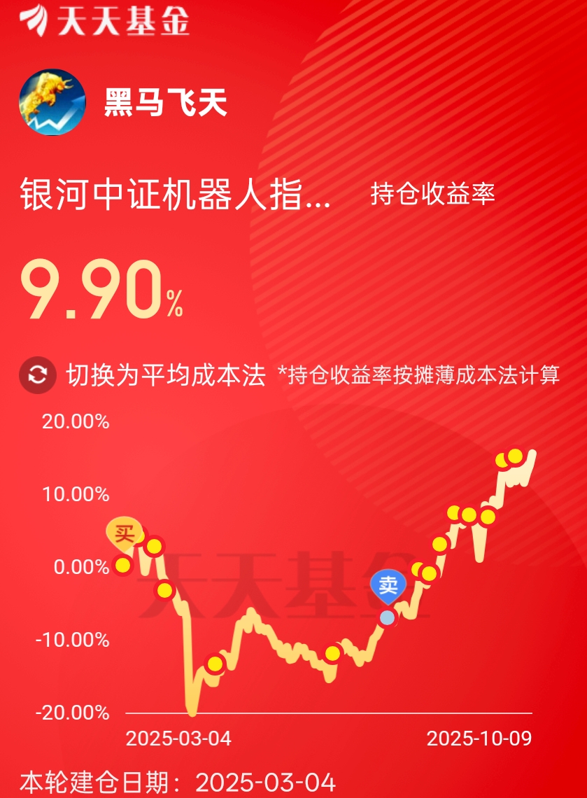 很多爱粉持有机器人,黑马也有,在中线定投$银河中证机器人指数发起式C(OTCFUND|021302)$,目前浮盈9.9%。