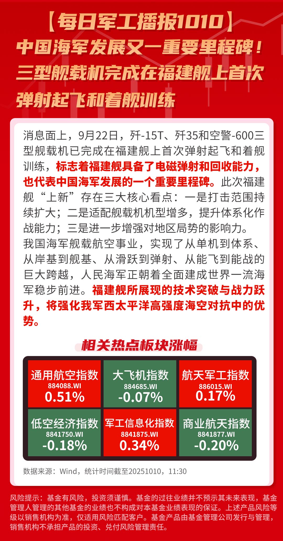 【每日军工播报1010】中国海军发展又一重要里程碑!三型舰载机完成在福建舰上首次弹射起飞和着舰训练