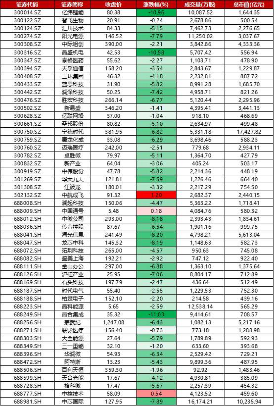 行业板块涨少跌多,水泥建材、燃气、公用事业、煤炭行业涨幅居前,电池、半导体、能源金属、贵金属、光伏设备、小金属板块跌幅居前。