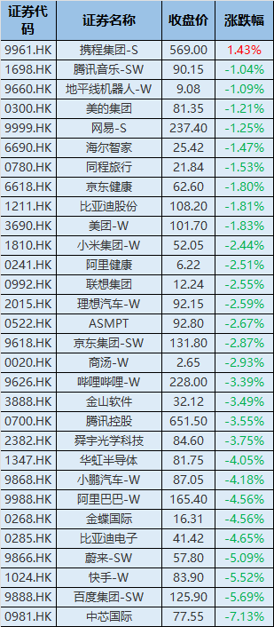 数据来源:Wind,上表仅为列示恒生科技指数所有成分股2025年10月10日表现数据,无特定推荐之意,并可能根据指数编制方案调整。