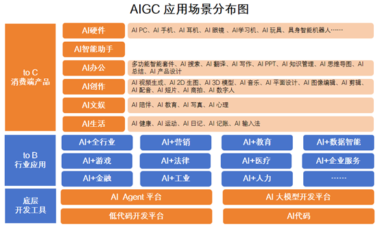 数据来源:量子位智库《2025中国AIGC应用全景图谱报告》,2025.4.19。上述行业仅供示例,不构成投资建议。