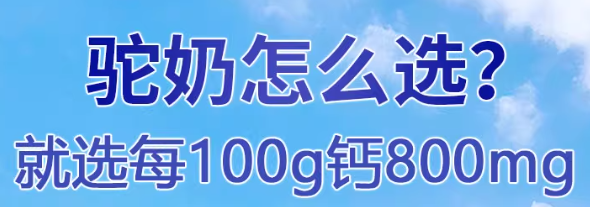 页面介绍还给出“温馨提示”,驼奶要选钙含量为800mg/100g、高蛋白质含量的产品。