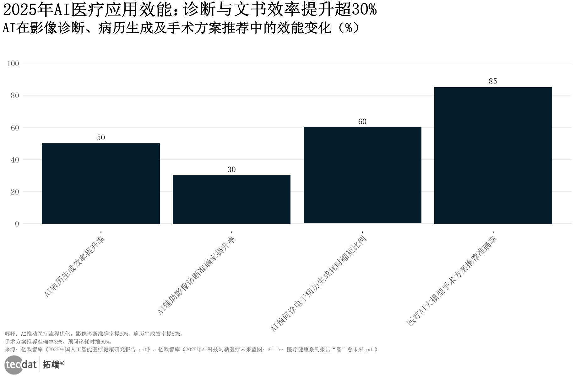 AI在影像诊断、病历生成及手术方案推荐中的效能变化(%)图表数据及PDF模板已分享到会员群。