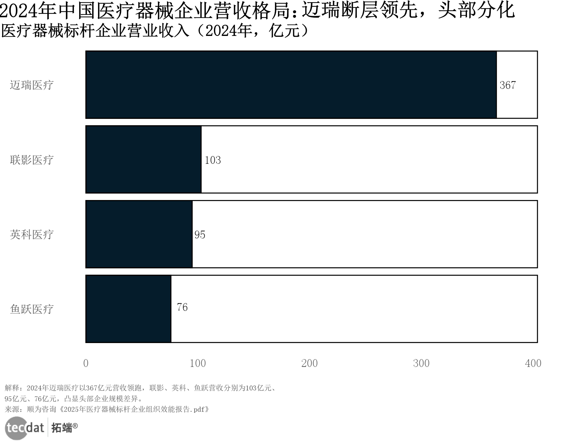 医疗器械标杆企业营业收入(2024年,亿元)图表数据及PDF模板已分享到会员群。