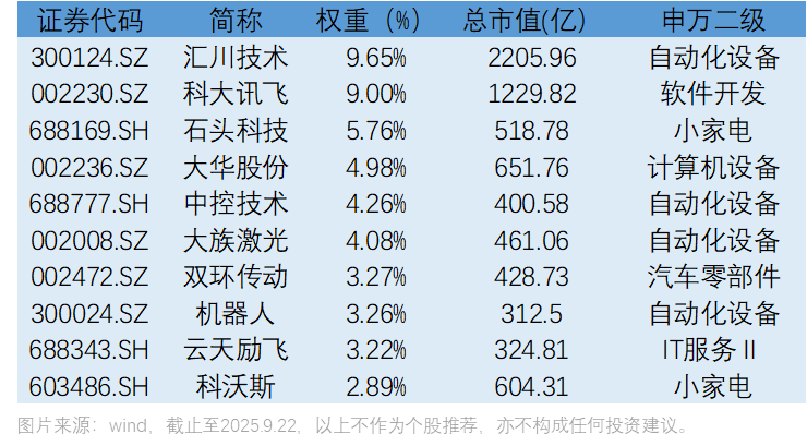 1)龙头汇聚共振,提供驱动动能。龙头股经营更稳定、客户基础更好、整合产业链能力更强,有大的发展空间。中证机器人指数指数成分股共计73只,包含各机器人行业龙头。前十大成份股占比50.36%,精准锚定机器人产业核心环节,捕获细分领域的投资机会。