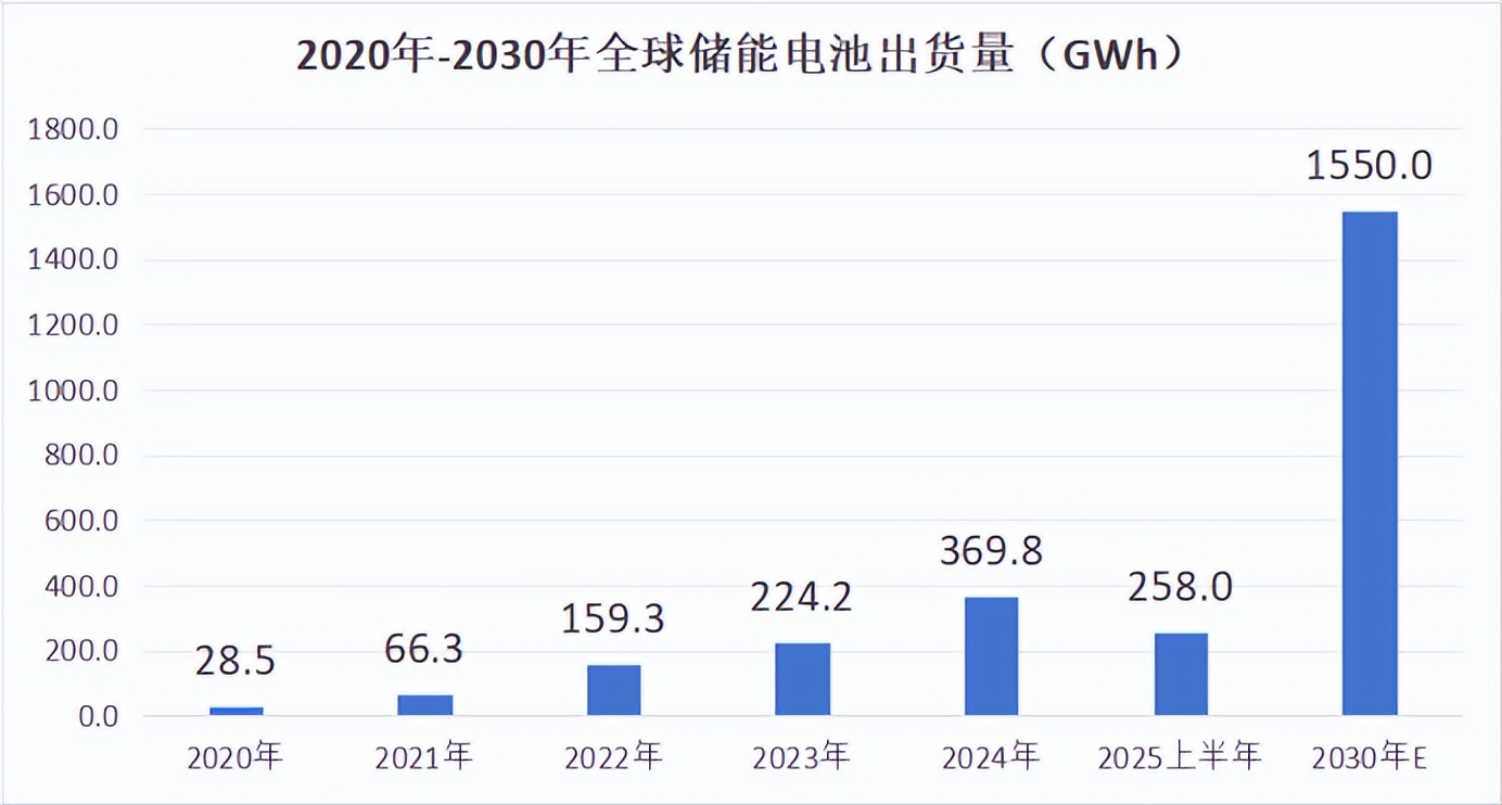 显然,这些都助推了储能市场的发展。据预测,到2030年,全球储能电池出货量将增长至1550GWh。