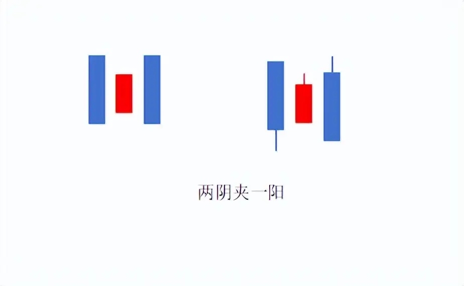 两阴夹一阳是由两根较长的阴线中间夹这一根较短的阳线组成,它可以出现在上涨行情中也可以出现在下跌行情中,两阴夹一阳也被称为空方炮。两阴夹一阳图形如图所示。
