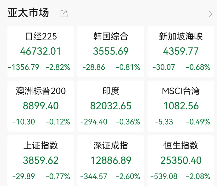 【导读】亚太股市集体下挫,黄金、白银、比特币等资产走低