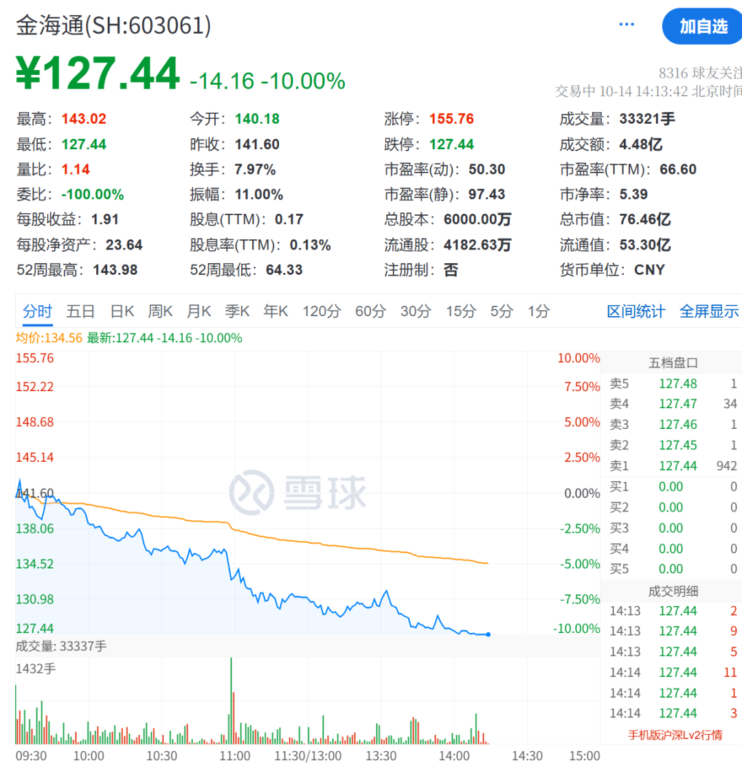 从板块来看,通信、电子、计算机等行业集体下挫,半导体、芯片、光通信、GPU、消费电子等概念股走低,金海通、开普云、振华股份等多股跳水跌停。