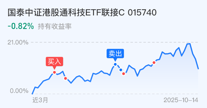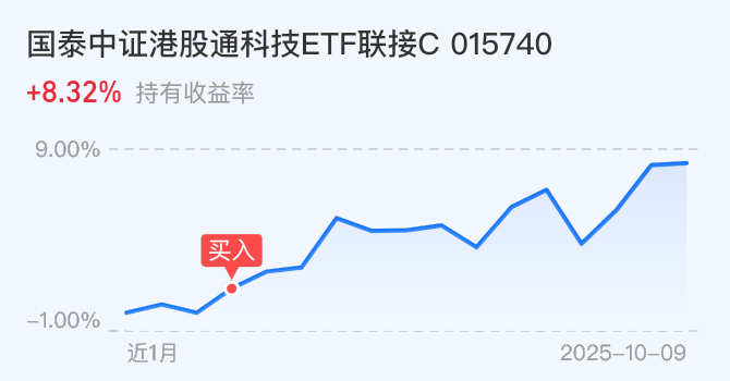 我加仓$国泰中证港股通科技ETF发起联接C(OTCFUND|015740)$5000。发起反攻号角!港股科技接连震荡后,今天也是终于稳住反弹了,早盘一度领涨。消息看,隔夜美联储再放鸽派信号,市场对美10月降息预期继续升温,这是直接利好港股市场,特别是港股中的科技资产。且本轮科技牛中,港股科技涨幅相对有限,在十五五规划将要落地,港股科技有望迎来新利好催化补涨。