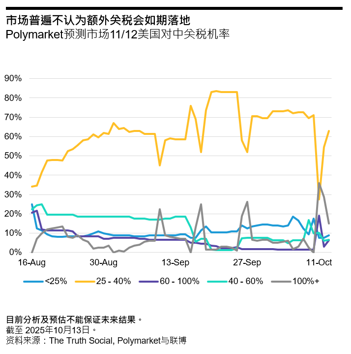 基于此,联博评估,此举更可能是一种为中美两国增加筹码的战略手段,旨在为即将到来的中美谈判创造杠杆。市场也正如此定价; 无论是预测市场所显示的较低落地概率,还是震荡中并未出现恐慌性抛售的市场表现,都表明投资者普遍未将其视为基准情景。这种理性的市场定价,也削弱了威胁本身的冲击力。此外,中国市场在历经了数次的关税挑战后,不论是出口企业或者投资者,对于关税疑虑的敏感程度都已有所钝化。
