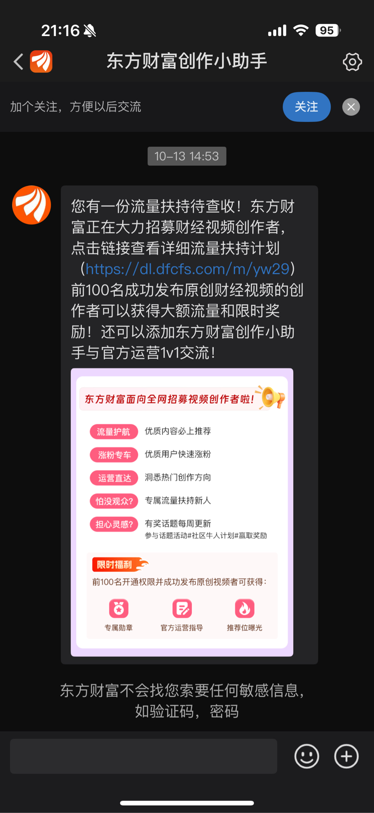 无意间打开后台消息栏目看到了以下的图片,瞬间觉得,东财的这个团队可塑性的确可以,依稀记得当时2018年抖音刚流行起来的时候,我就在想,东财股吧那么成功,为什么不将视频功能导入这个平台呢?我记得我还打过电话给东财客服反应过这个问题的