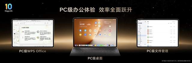 在MagicOS 10加持下,荣耀MagicPad3 Pro带来全新PC级办公体验,从PC级桌面、PC级WPS Office到PC级文件管理,效率全面跃升。荣耀MagicPad3 Pro内置AI文档智能体和AI会议智能体,不仅带来行业独家的一键排版功能,还能实时生成会议纪要与待办事项清单,真正实现会议无忧;而智能识屏功能可即时响应查询,让AI体验全面提升。