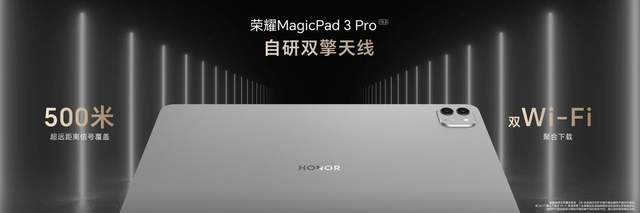 荣耀MagicPad3 Pro采用8扬声器设计,升级第三代空间音频技术,让声场更加宽广立体;业界最大12450mAh青海湖电池,最高支持80W有线超级快充,告别电量焦虑;采用自研双擎天线,可实现500米WiFi超远距离覆盖。