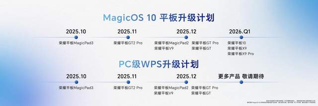 荣耀还公布了一系列持续回馈老用户的福利:购买荣耀MagicPad3 Pro最高配置可享300元升杯券;即刻起,将在多款平板机型中陆续升级MagicOS 10与PC级WPS功能。另外,2021年4月后发布的荣耀PC全系也将获得YOYO助理升级推送,双11期间购买荣耀笔记本,更有叠加国补最高省3000元的优惠福利。