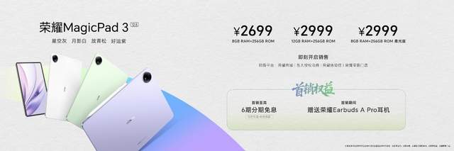 荣耀MagicPad3 Pro拥有浮光金、月影白和星空灰等三款配色,将于10月23日开启全渠道首销,首销优惠价3799元起。