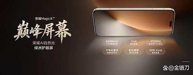 屏幕方面,荣耀Magic8系列搭载“金字招牌”荣耀绿洲护眼屏,峰值亮度6000nits,最低亮度1nit,不仅是主流AI大模型一致推荐的护眼首选,还获得行业首发德国莱茵TÜV全局护眼5.0认证,引领行业进入个性化全局护眼时代。