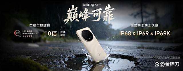 可靠性方面,荣耀Magic8系列配备荣耀巨犀玻璃,10倍抗跌耐摔,获得“SGS整机抗跌耐摔”五星认证,并支持IP68、IP69和IP69K,获满级防尘防水认证;音质方面,荣耀首创开放音腔技术,加上行业顶级双1216扬声器,搭配自研AI声场算法,带来澎湃有力的环绕低音炮巅峰音质。