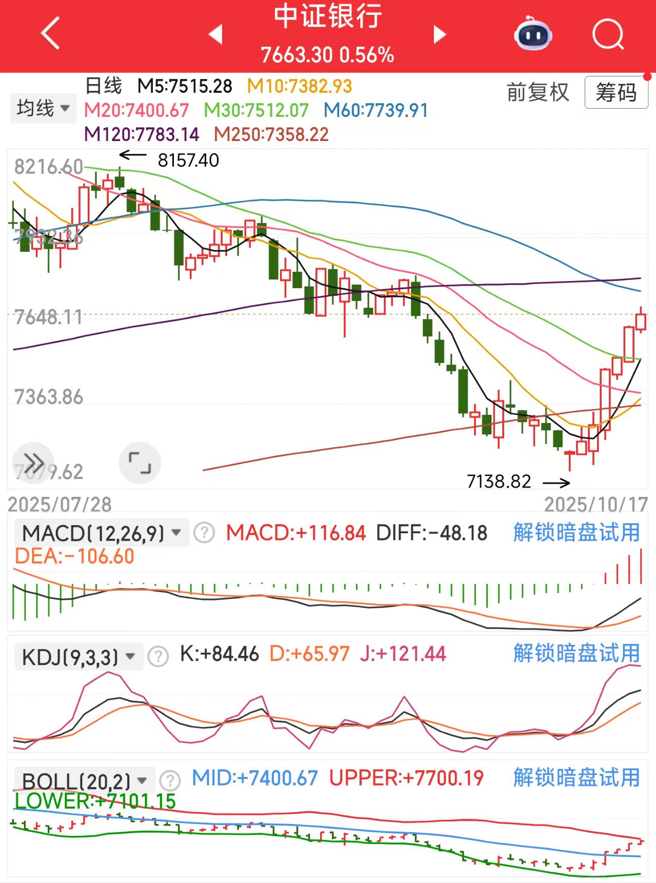 基本面也在悄悄变好,贷款利息差没那么难看了,坏账率在慢慢降,尤其那些区域银行,资产质量稳得很。技术面也挺给力,均线走平向上,MACD红柱开始冒头,布林带通道在震荡上行,说明趋势在好转。
