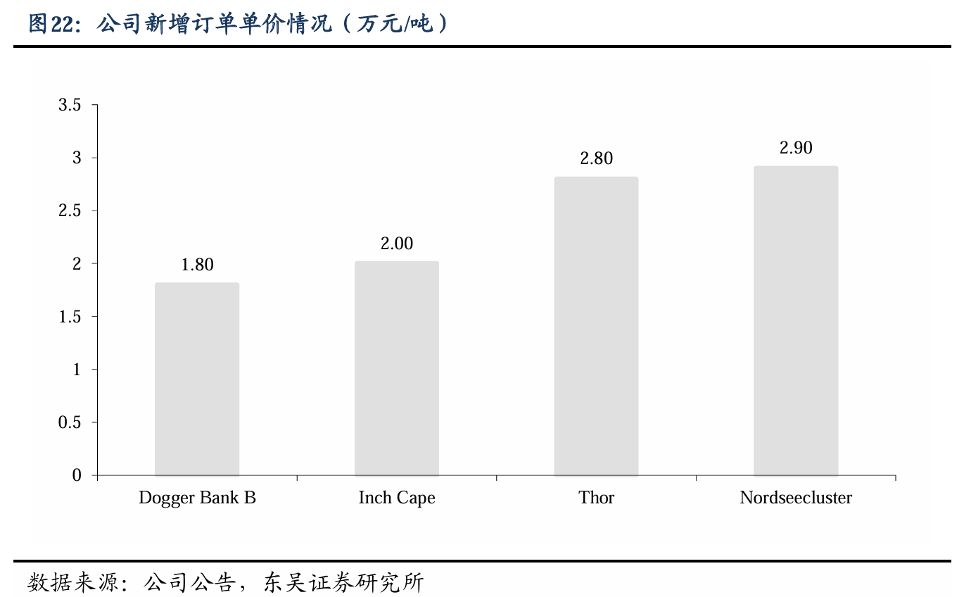 图片说明:大金重工历史订单单价,数据来源于东吴证券