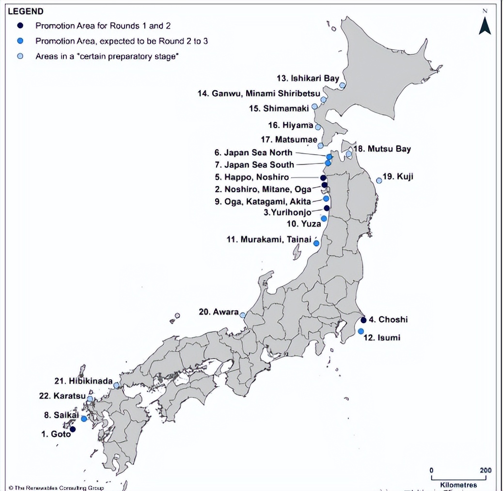 图片说明:日本风电潜在发展空间区域,数据来源于Offshore Wind Asia