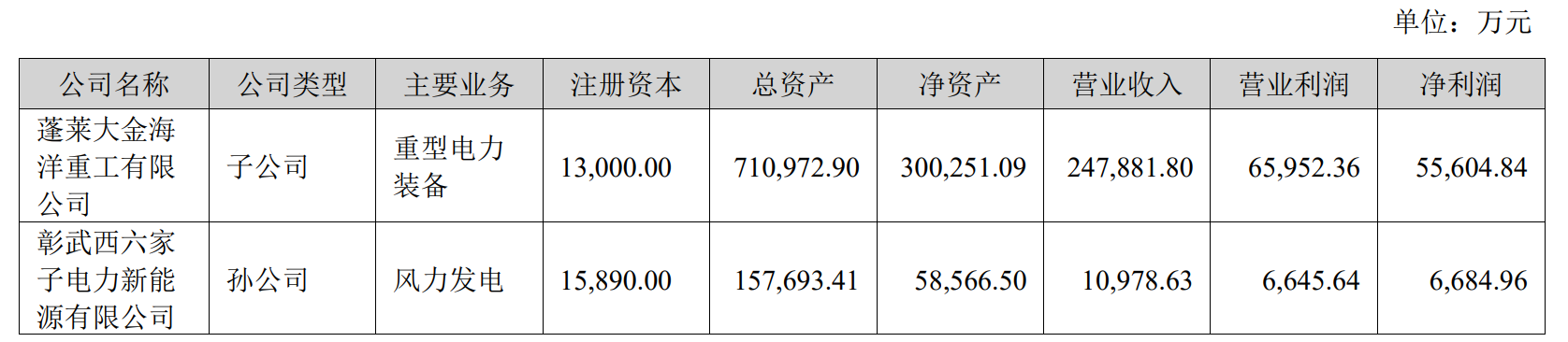 图片说明:大金重工重要子公司2025H1业绩表现,数据来源于大金重工公告