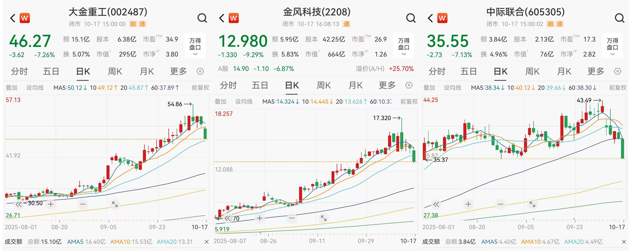 图片说明:大金重工、金风科技、中际联合10月份以来均大幅下跌,数据来源于Wind