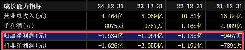 从2024年财报来看,标准股份超过95%的营收依然来自缝纫机械相关产品,但年营收已经萎缩到4.46亿元,与2021年的近17亿元相比下降了七成有余。公司净利润已经持续4年亏损,扣非后的净利润已经连续12年亏损。