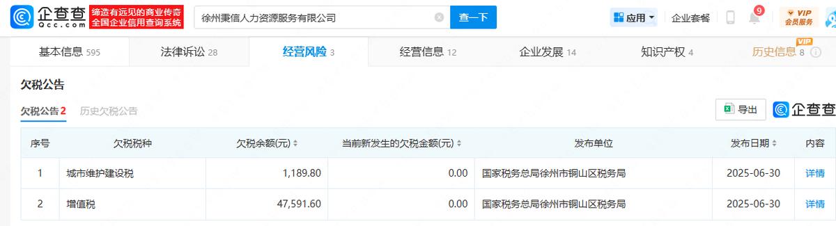 企查查信息显示,徐州秉信目前被法院列为被执行人,于今年7月因工伤保险待遇纠纷案件被执行11.04万元。此外,该公司在2023年和2024年多次被列为被执行人,2025年还有两次欠税记录。