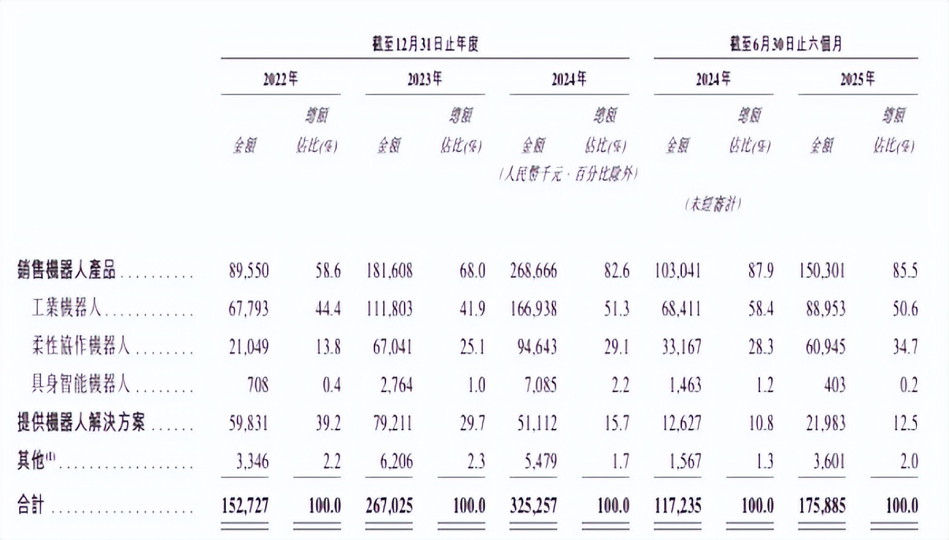招股书介绍,公司致力于智能机器人及机器人解决方案的设计、研发、制造与商业化。依托全栈自研技术平台,公司构建了丰富的机器人应用生态体系,涵盖工业机器人、柔性协作机器人、具身智能机器人及相关机器人解决方案,这些产品及方案具备行业领先的性能、灵活性、智能性、安全性与稳健性。提供全面的智能机器人及机器人解决方案组合。