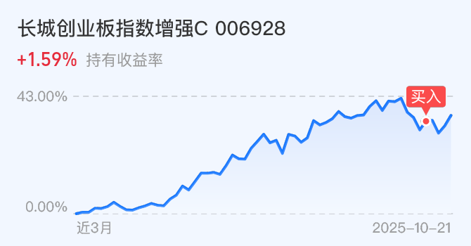 3.我加仓$长城创业板指数增强C$2000元。今天创业板指低开高走,短期指标KDJ有金叉形成趋势。受需求端刺激、AI重塑盈利等因素考虑,高盛把我国市场从“逢高减持”转向“逢低买入”,并表示我国市场正开启一轮更持久的慢牛。叠加市场对美联储降息保持高度乐观,在外资唱多声下是有望吸引区域资金涌入炒作。