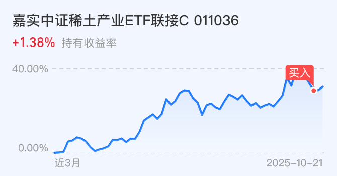 我加仓 $嘉实中证稀土产业ETF联接C(OTCFUND|011036)$10000元。最近稀土走势震荡,当前日线来到了均线支撑位附近。从供给端看,受美、缅矿进口下降,以及2025年稀土开采指标同比下滑影响,国内稀土精矿供应偏紧。与之对应的是稀土需求端明确,无论是新能源产业持续扩张,还是新兴应用如机器人、低空经济和工业电机等商业化快速推进,使得稀土需求端明确,在供需失衡叠加出口管制下,有望驱动资金反复活跃。