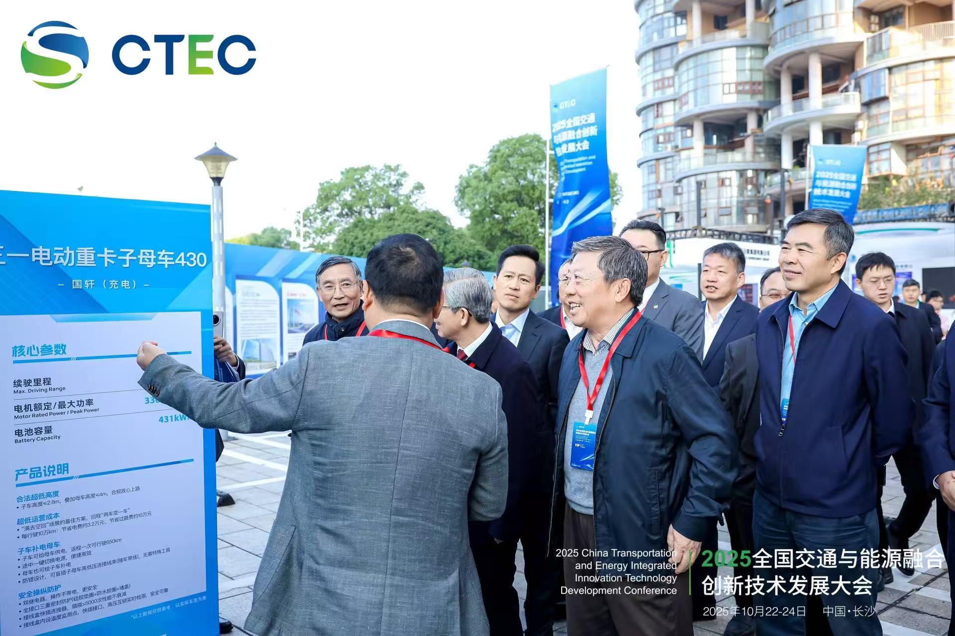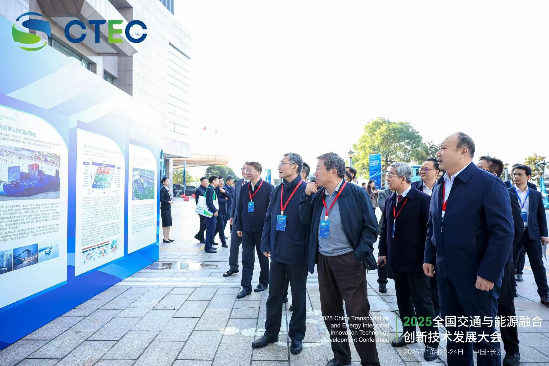 交通运输部原副部长高宏峰、国家能源局新能源和可再生能源司司长李创军、中国工程院院士郑健龙、湖南省交通运输厅厅长刘扬等领导嘉宾在主办方的陪同下,饶有兴致地参观了位于会场外的交能融合典型案例及企业展台。