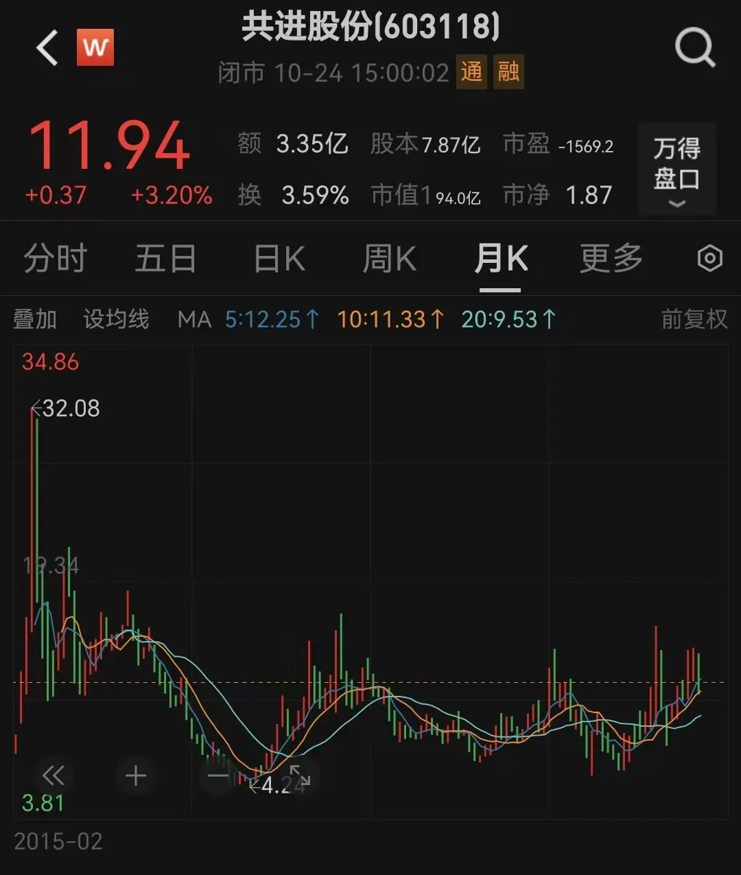 10月24日,共进股份收于11.94元/股,最新市值为94亿元。