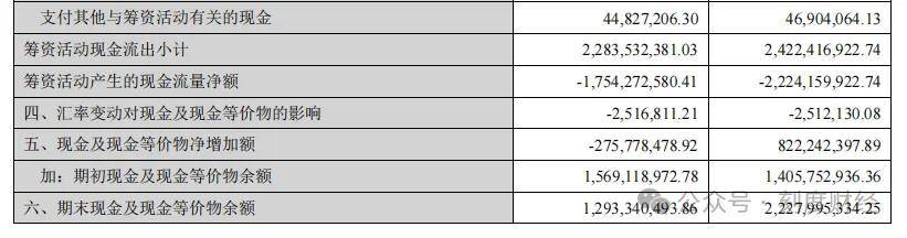 现金及现金等价物净增加额同比下降133.54%,期末货币资金余额为17.66亿元,较期初下降28.81%。