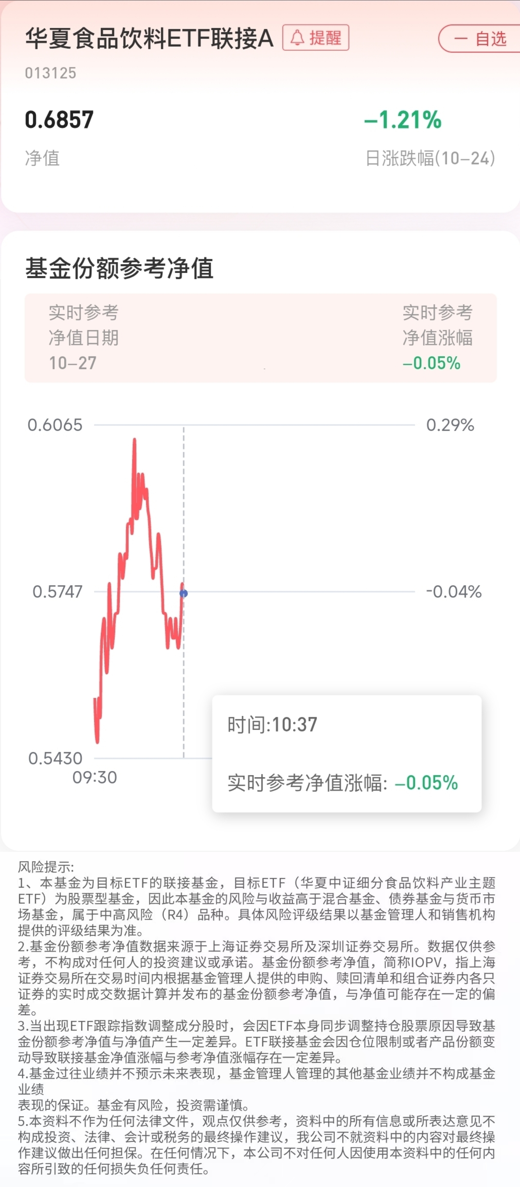 截止至2025年10月27日10:37,本基金跟踪目标基金的实时参考净值涨幅为-0.05%,其跟踪的指数最新PB(市净率)为4.64,处于较低区间。