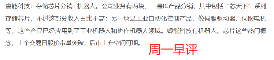 $睿能科技(SH603933)$:存储芯片分销+伺服驱动器+工业自动化。公司主营业务以IC分销为主,占总收入六成以上,同时伺服驱动器和电机产品也应用到机器人领域。睿能科技在10月24日出现低开高走的反包走势,今日股价低开后进一步震荡走高,日内表现较强,股价再度拉出大阳线。从近期K线看,股价在震荡中试图构筑底部结构,均线系统逐渐由多头排列转变,技术乐观。成交量在反包当日有所放大,换手率提升,有短线资金在博弈反弹,这里继续拿着。