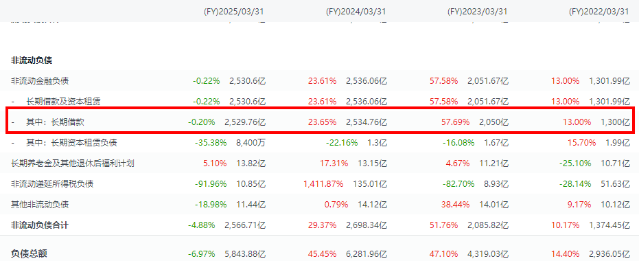 因此,在2023财年和2024财年,公司利用其良好的信用评级,通过银行贷款或发行债券,提前借入了大量资金。这就是借款在这两年内翻倍的原因。