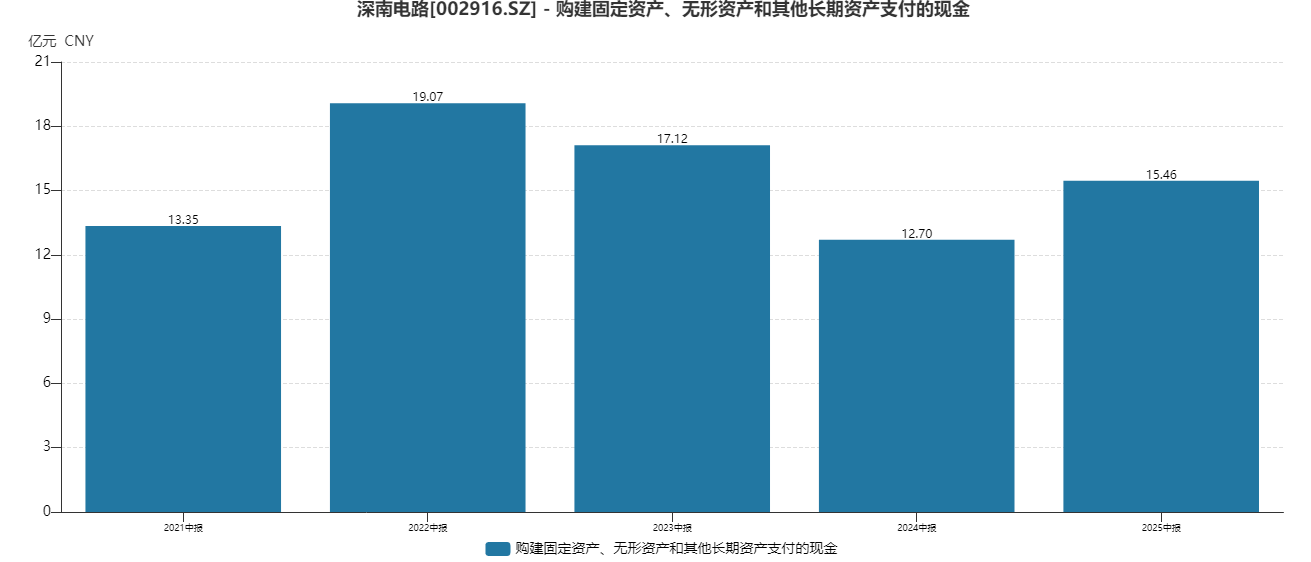 深南电路的最新一期(2025年中报)的资本支出高达15.46亿元。这强烈暗示,在AI和国产替代需求的双重驱动下,深南电路极有可能已经启动了“第二波”更猛烈的资本开支.