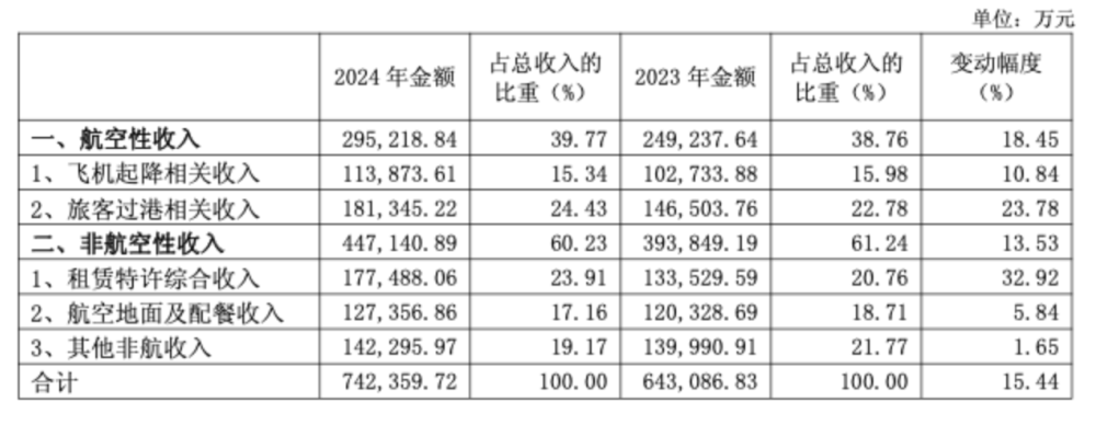 作为对比,2024年旅客量仅次于上海浦东机场的白云机场,非航收入占比则达到了60.23%。