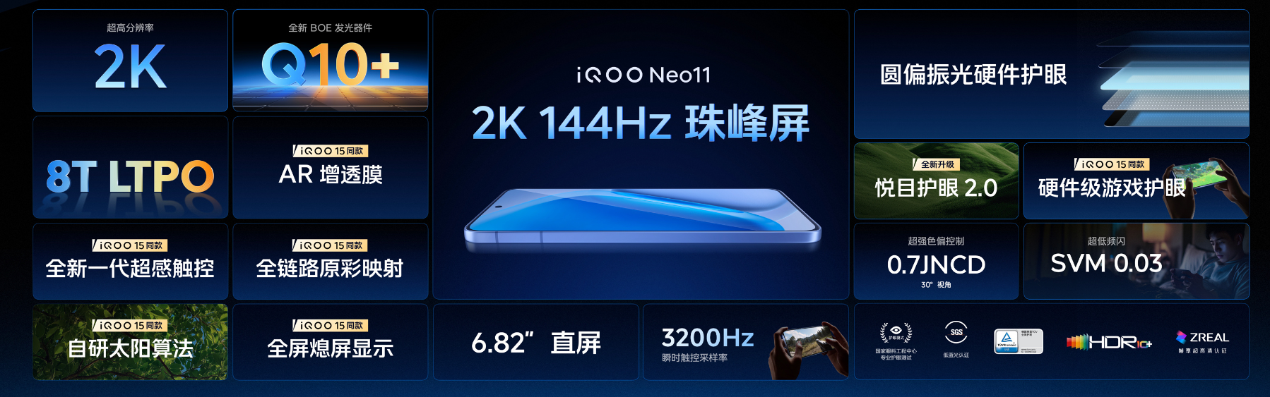 同时,Neo11 通过 KPL 比赛用机 144 高帧测试认证,首批适配《王者荣耀》原生 144FPS 高帧模式,“玩王者就选 iQOO”。