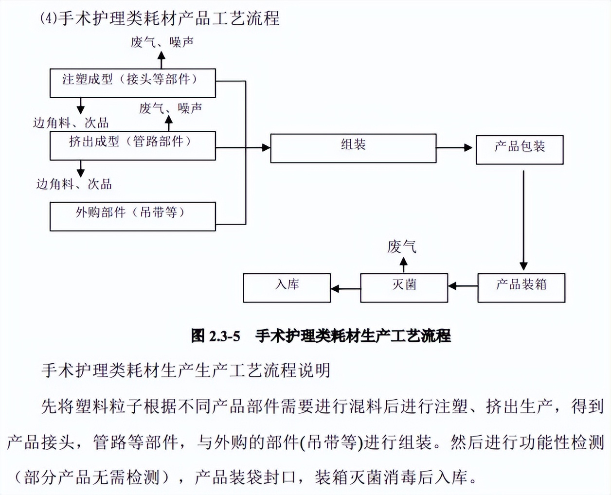 另就环评文件显示的工艺流程来看,手术护理类耗材生产过程中涉及注塑成型、灭菌等过程,期间会产生废气和噪声。文件还提到,该项目属于环评行业“三十二、专用设备制造业35”大类“医疗仪器设备及器械制造358”。据《建设项目环境影响评价分类管理名录(2021 年版)》规定,“医疗仪器设备及器械制造358”需纳入环评管理。据此,若此前海圣医疗存在手术护理类耗材的产能建设,理应已经过相关部门审批。综上所述,不知环评文件中手术护理类耗材已审批产能与招股书中手术护理类耗材产能的差异从何而来。