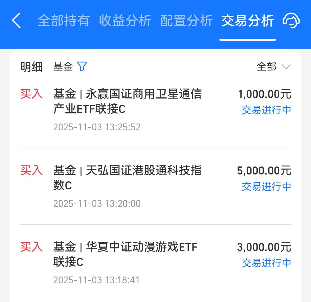 操作分析:今日买入1000元的$永赢国证商用卫星通信产业ETF联接C$,该基金重点布局卫星通信方向,今天市场整体上是调整为主,该板块也是小幅下跌为主,对此我选择继续逢跌加仓布局。我相信随着AI机器人、智能手机、智能汽车等产业的蓬勃发展,对无线通信需求只会有增无减,并叠加十五五规划新增“航天强国”的政策利好加持下。未来的卫星通信产业机会空前,因此随着卫星利好不断,文哥认为布局该产业板块是十分必须的。所以我在今天选择继续布局该基金,该基金布局灵活,费率便宜,是非常不错的一个卫星通信产业指数基金。