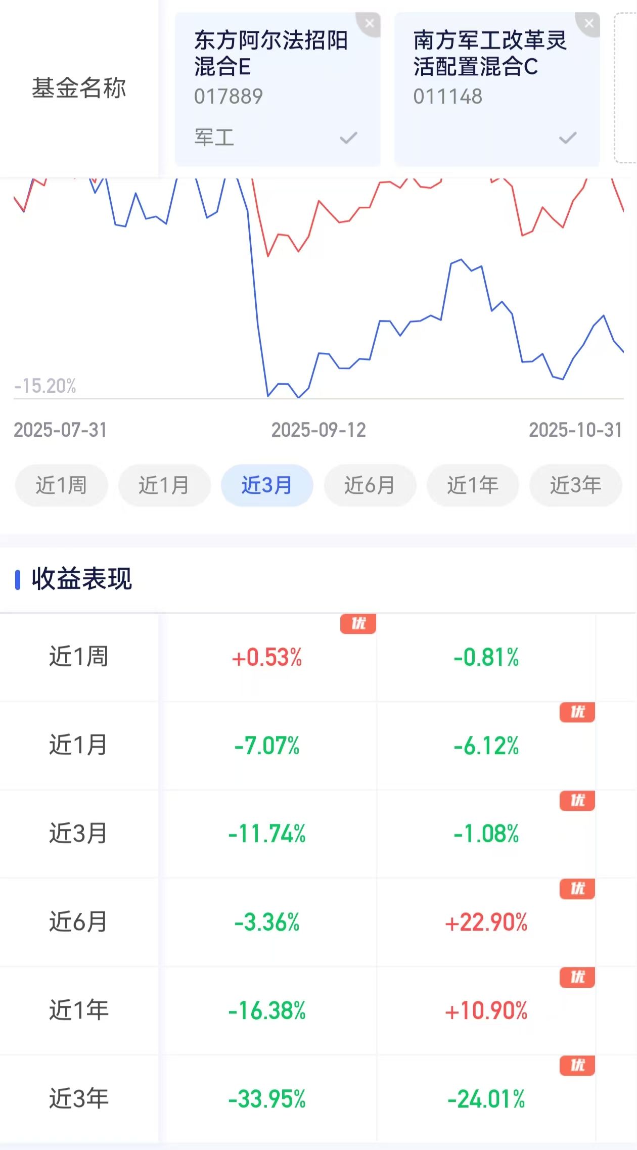 一军工 小俊还是相对认为军工这个位置安全点,所以军工小俊再加点,以防单个军工不行,小俊从其他地方换个五万去$南方军工改革灵活配置混合C$,记得小俊是从其他基金里面的换的,预计是小盘量化基金,感觉最近有点弱,换点出来,预计是格林那个基金。