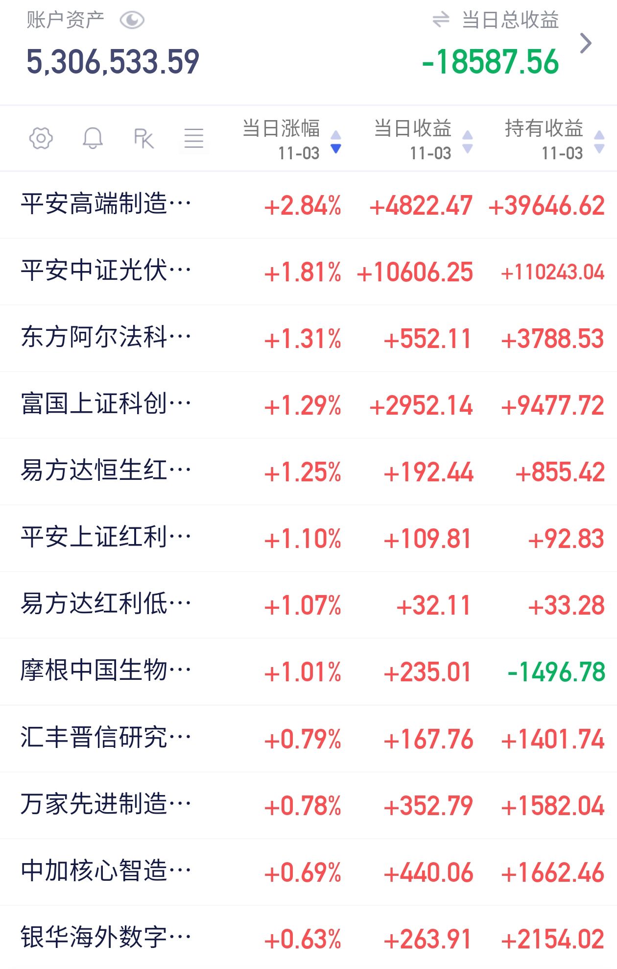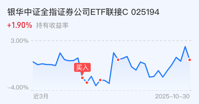 三 ,证券小俊认为这么长的牛市,最后会有证券诱多,所以证券今天也继续小加一万元$银华中证全指证券公司ETF联接C$,今天上证也红了,上证冲顶,小俊开始锁定证券收益。