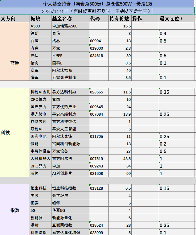 个人仓位分享(仓位最重要):目前权益基金仓位是500万不含收益,债基保险理财不计入总额度,目前8.9成,一年仓位一般增加10%到30%