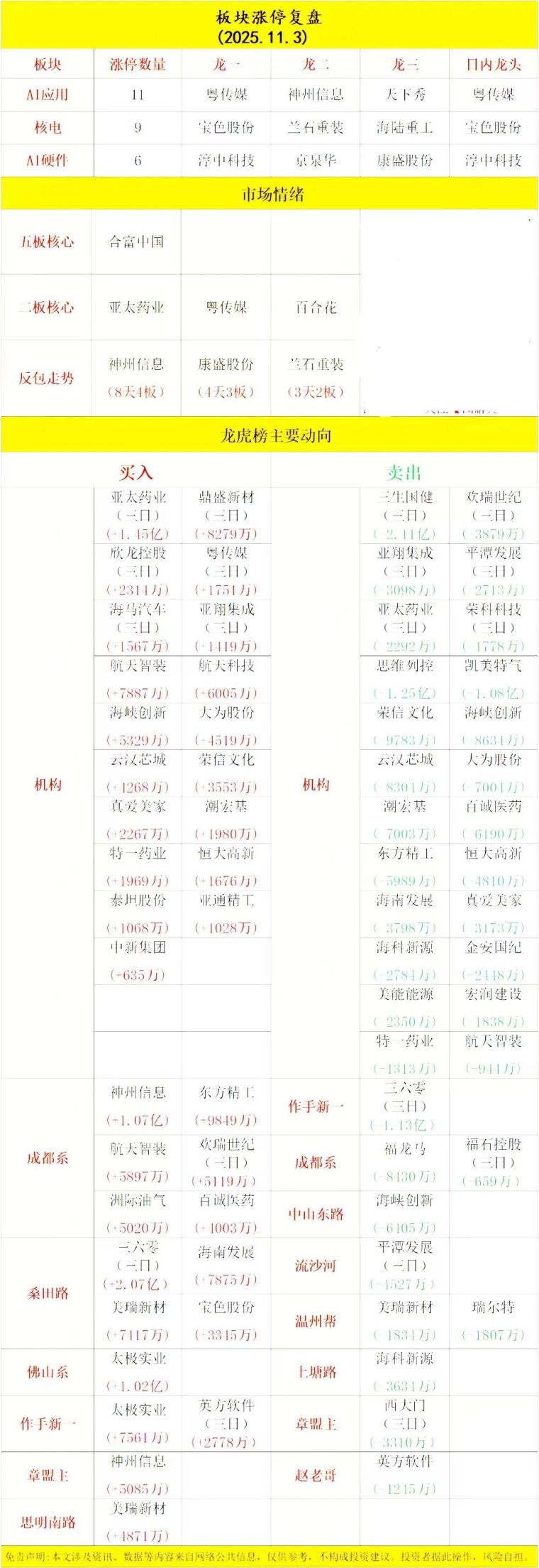 板块上:当下的核心主线:芯片产业,而最强势板块:芯片产业+AI应用+化工。持进一步的分岐和轮动,难度加大,但是整体并不代表结的思考。助攻:核电+航天+福建+AI漫剧。