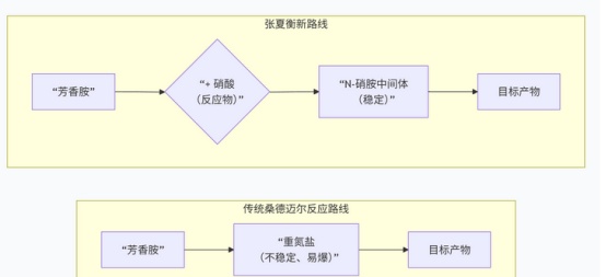 历史维度:终结 140 年重氮化工艺垄断(1884 年发明),是有机合成领域首次实现芳香胺脱氨 “无风险、零污染” 的颠覆性创新。对比德国巴斯夫 2023 年推出的 “微通道重氮化工艺”(仅降低风险未根除),该技术从原理上消除爆炸隐患(传统工艺事故率 0.3 次 / 万吨产能),被辉瑞称为 “真正的杰作”。